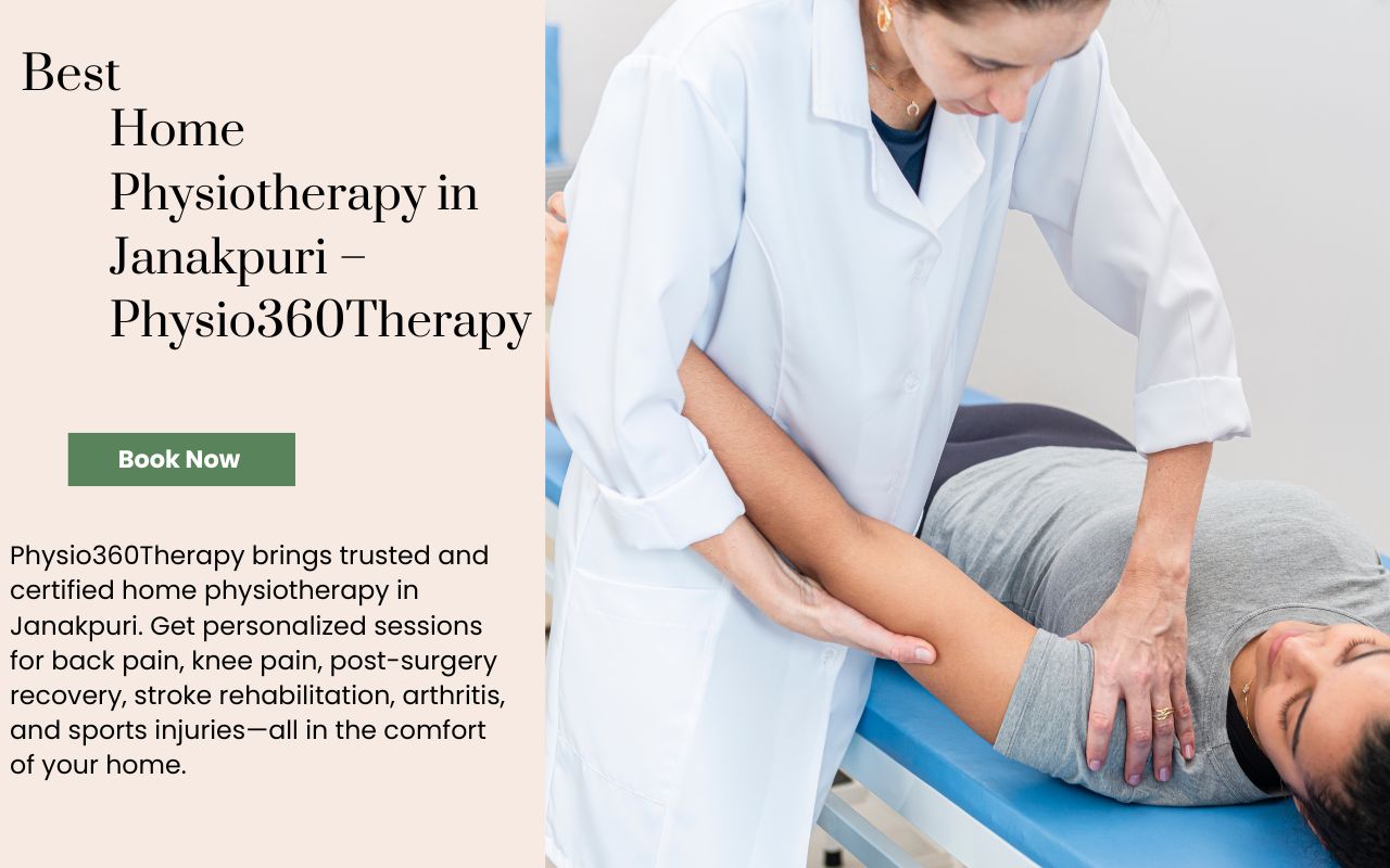 Are you struggling with back pain, knee pain, joint stiffness, or post-surgery recovery? At Physio360Therapy, we bring professional physiotherapy to your doorstep in Janakpuri, making it easier and safer for you to recover without traveling to a clinic.If you need physiotherapy at home in Janakpuri, call 7302172756 to book a home visit.