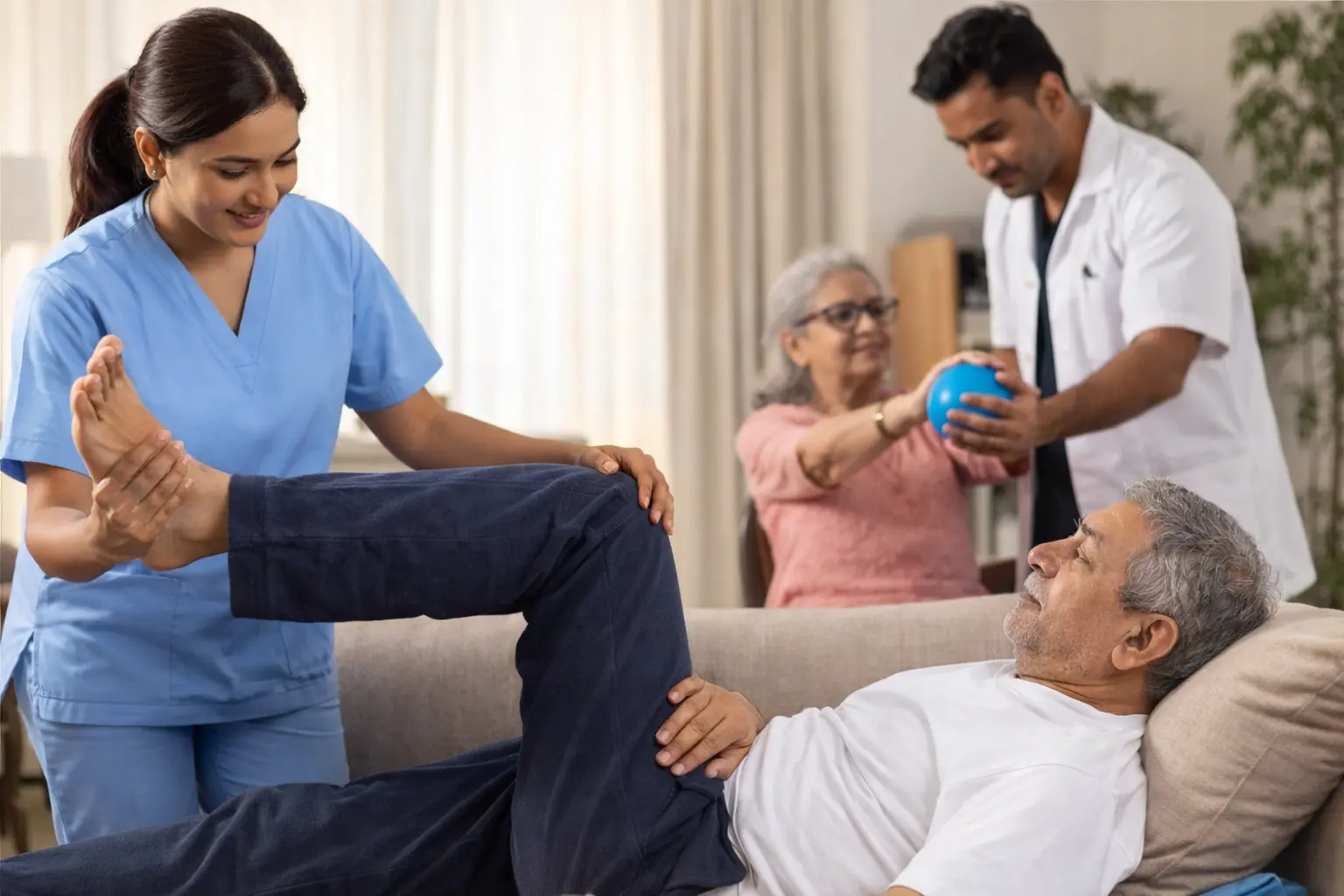 At home, rehab happens in your real environment—your bed, chair, stairs, floor surface, and walking space. This makes exercises more practical and improves consistency. When you follow the same plan daily, improvement becomes faster and long-lasting.